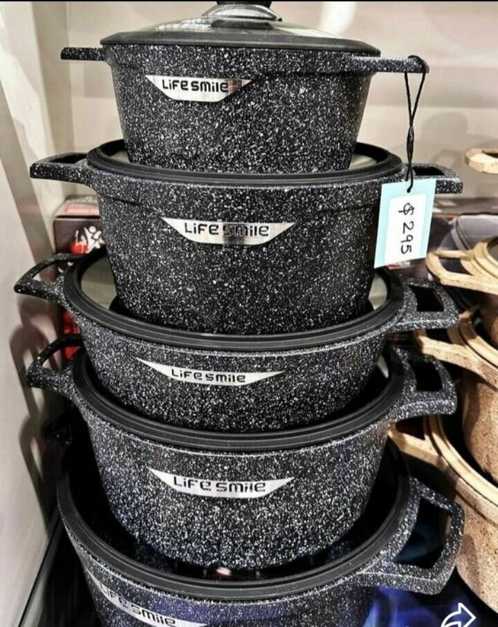 Ensemble de casseroles Life Smile en matériau antiadhésif durable. Idéal pour la cuisson quotidienne, ces casseroles conviennent à diverses sources de chaleur. Faciles à nettoyer et robustes, elles sont parfaites pour la cuisine familiale.