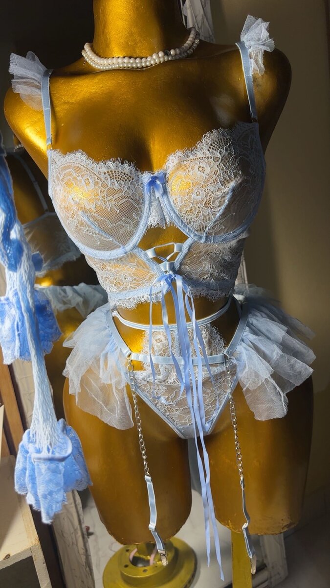 Sublime ensemble de lingerie en dentelle bleue. Parfait pour des occasions spéciales, il offre confort et séduction. Conçu pour sublimer la silhouette avec son design élégant et ses détails raffinés. Idéal pour se sentir belle et confiante.