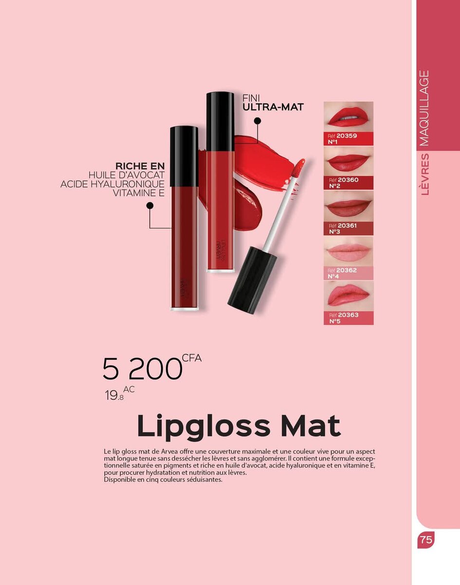 Le lip gloss mat offre une couverture intense et une teinte longue durée. Enrichi en huile d'avocat et vitamine E pour des lèvres hydratées tout au long de la journée. Disponible en plusieurs couleurs vibrantes.