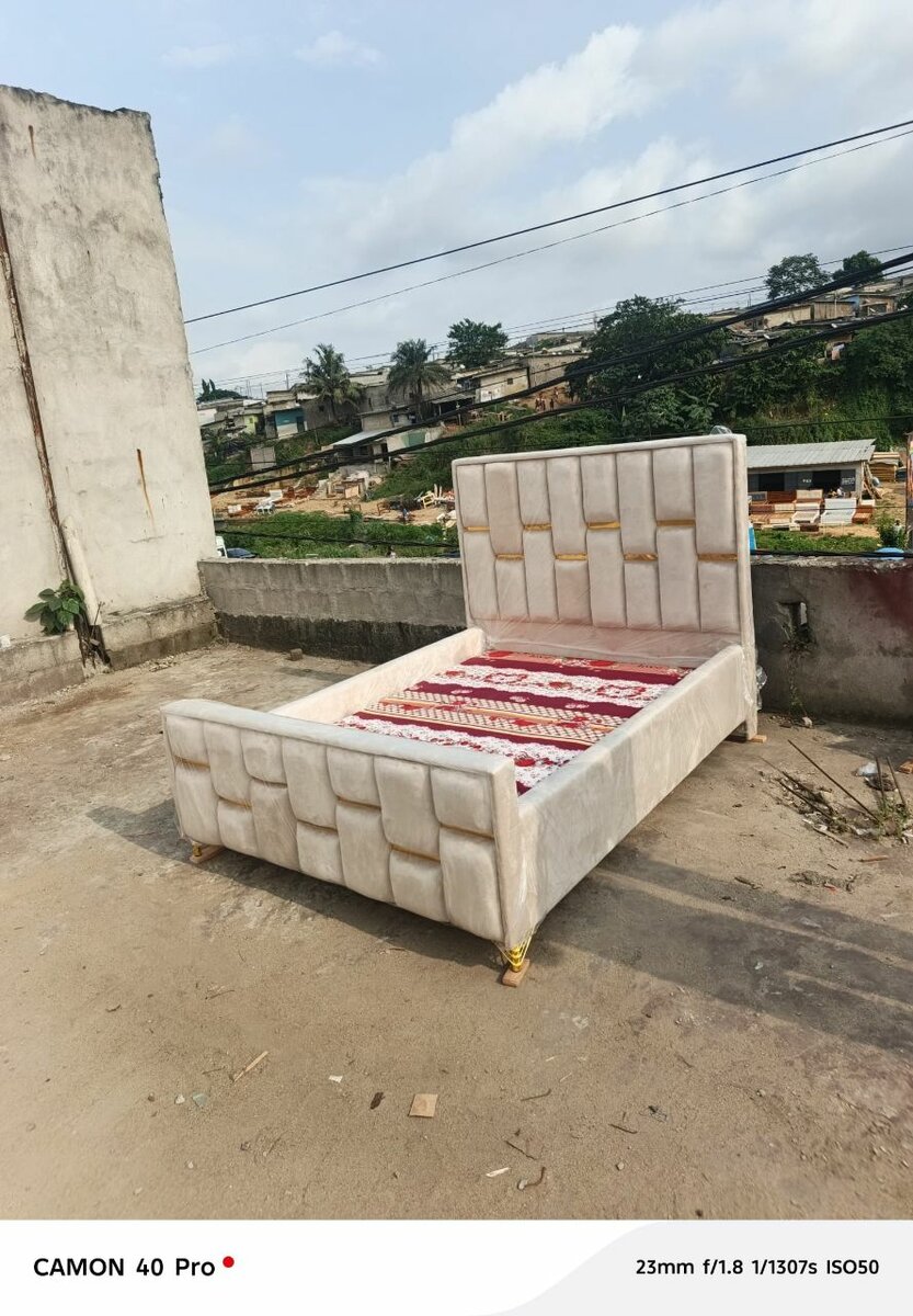 Lit contemporain avec tête de lit capitonnée, simili cuir de haute qualité. Design élégant et confortable, parfait pour une chambre moderne. Disponible en différentes couleurs. 05 45 39 08 99