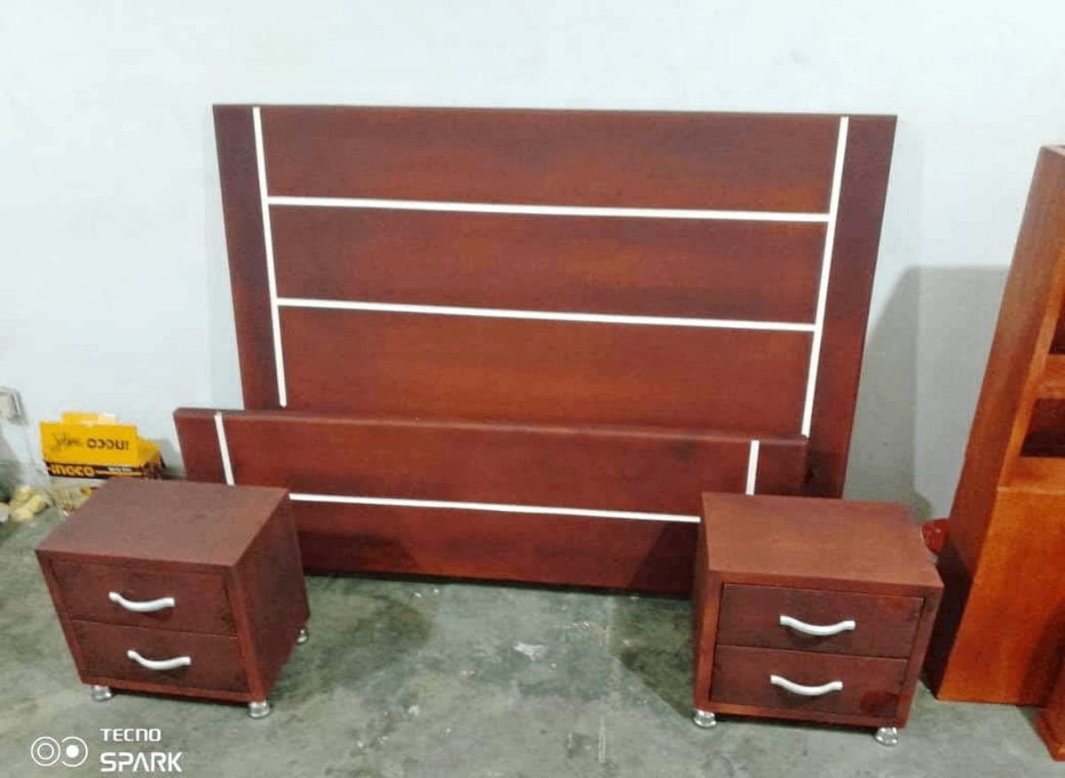 Lit avec chevets en bois marron