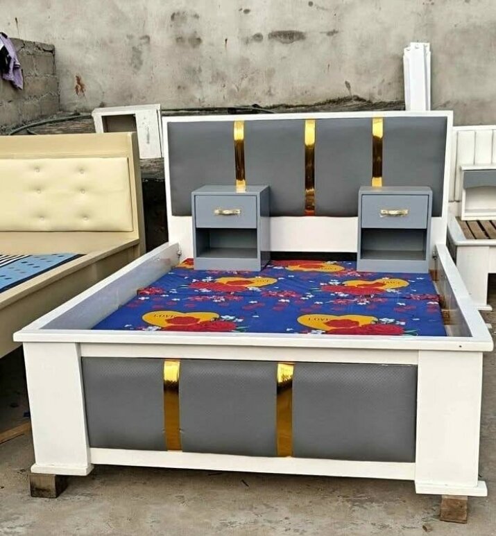 Lits élégants en bois et tissu