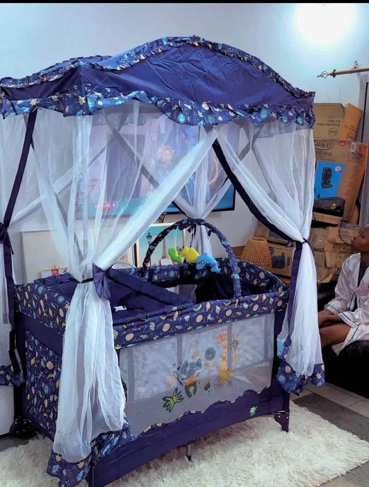 Lit de bébé confortable et sécurisé avec moustiquaire et baldaquin pour un sommeil paisible. Facile à monter et à nettoyer, parfait pour les parents à la recherche de confort et de sécurité pour leur bébé.