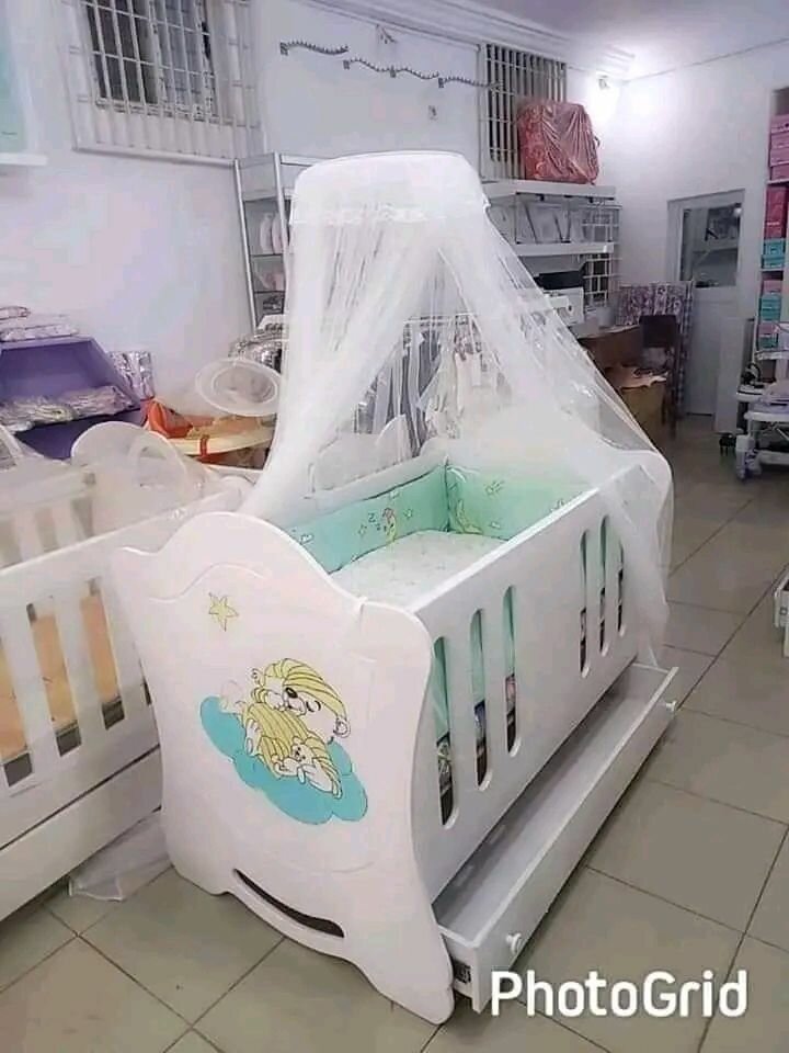 Berceau pour nouveau-né, conçu pour offrir confort et sécurité. En bois ou métal blanc, avec matelas et moustiquaire pour un sommeil paisible. Parfait pour les parents qui cherchent un lit sûr et élégant pour leur bébé.