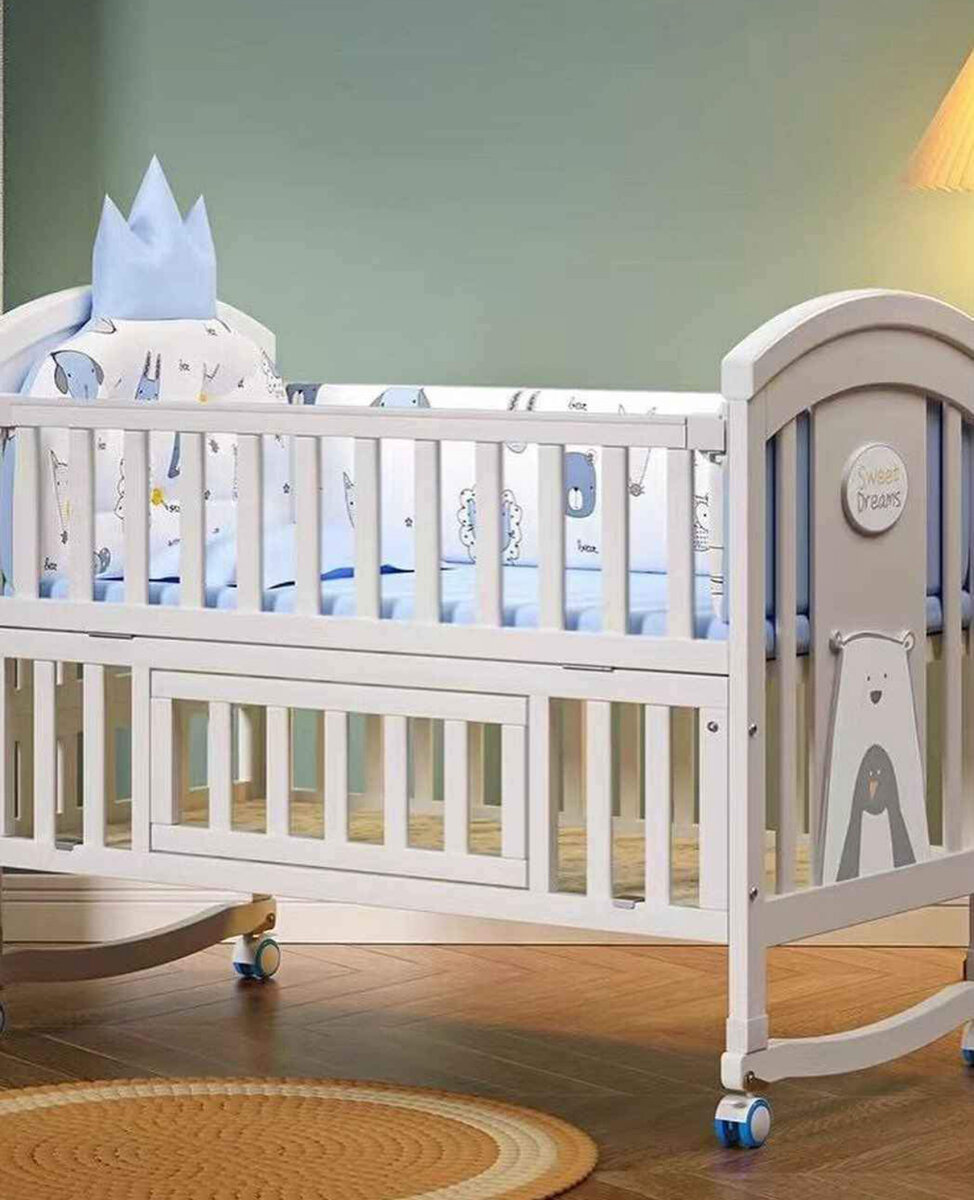 Lit bébé convertible en lit enfant avec matelas à langer et rangements. Sécurisé et évolutif pour accompagner votre enfant de la naissance à l'enfance.