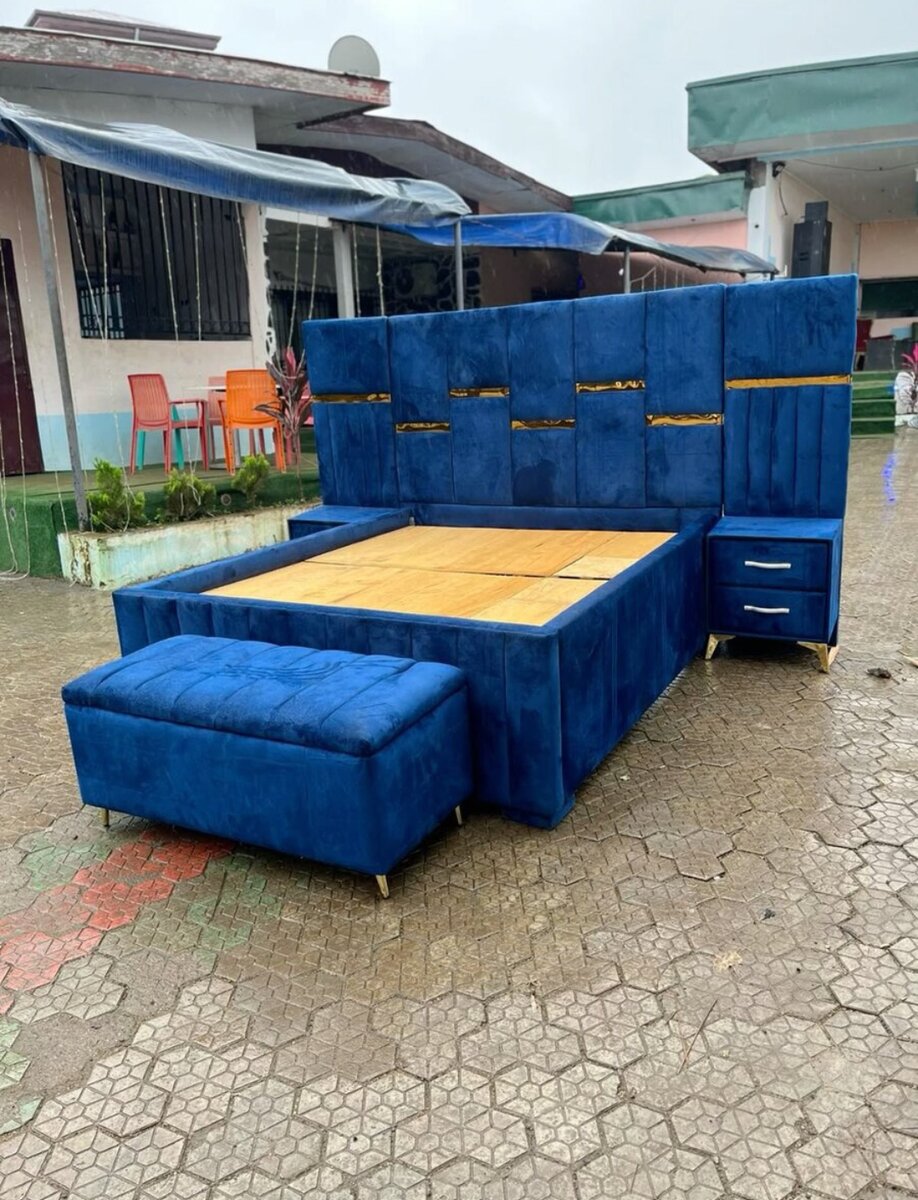 Lit moderne avec coffre de rangement intégré et tête de lit capitonnée. Conçu pour un confort optimal et un stockage pratique. Facile à assembler, idéal pour la chambre à coucher.