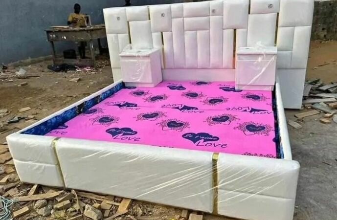 Lit design cuir blanc avec chevets