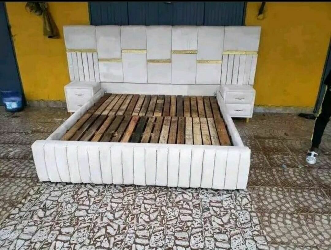 Transformez votre chambre à coucher avec ce lit double moderne en cuir blanc, doté de deux chevets intégrés. Conçu pour le confort et le style, il est idéal pour les couples qui recherchent un espace de sommeil élégant et fonctionnel.