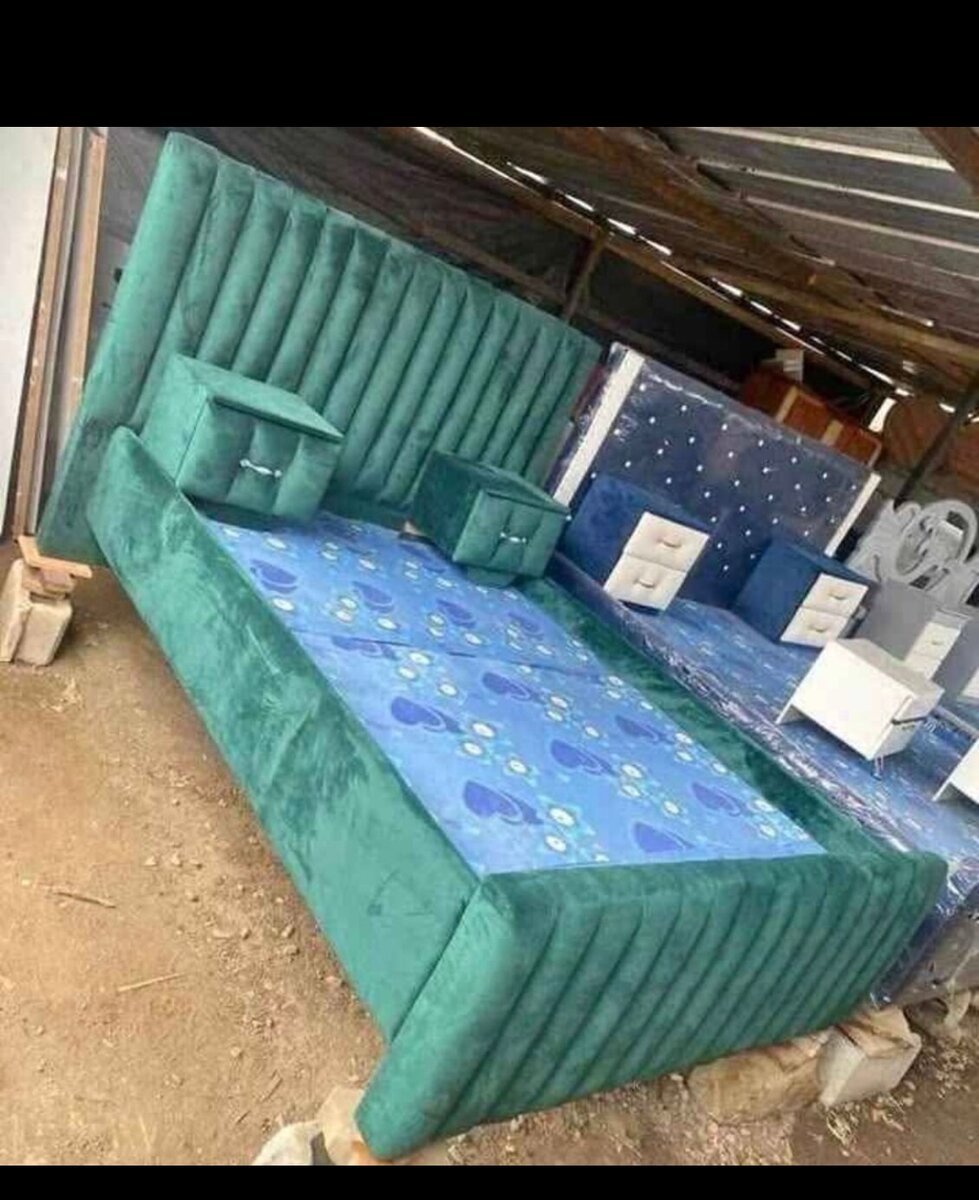 Lit double en velours vert