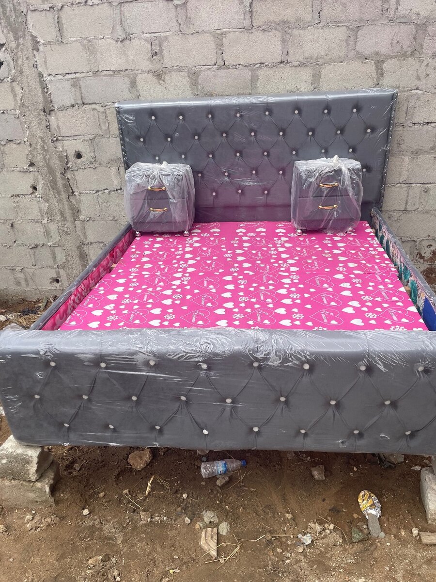 Transformez votre chambre avec ce magnifique lit double capitonné. 3 places Son design chic et moderne ajoute une touche de luxe, tandis que sa structure robuste assure durabilité et confort. Idéal pour une chambre moderne et élégante. Choisissez le confort et le style.