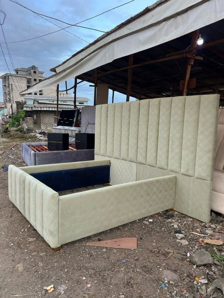 Lit double capitonné avec tête de lit et rangements intégrés. Conçu pour un confort optimal et un style élégant. Disponible en plusieurs couleurs.