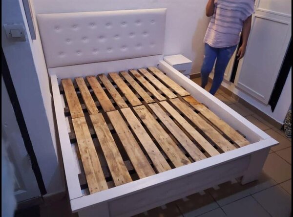 Lit double moderne avec tête de lit rembourrée en bois de haute qualité. Design élégant et solide, parfait pour apporter une touche contemporaine à votre chambre. Facile à assembler, confortable pour un sommeil réparateur.