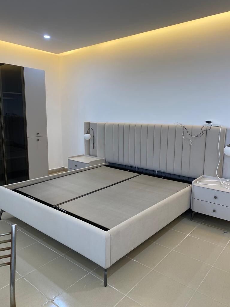 Transformez votre chambre avec ce lit double moderne et élégant. Doté d'une tête de lit rembourrée pour un confort optimal, il apporte une touche de sophistication à tout espace. Ses lignes épurées et design en font un choix idéal pour les intérieurs contemporains. Parfait pour des nuits reposantes et un style raffiné.