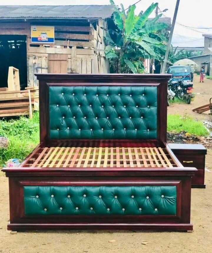 Lit en bois avec tête de lit capitonnée