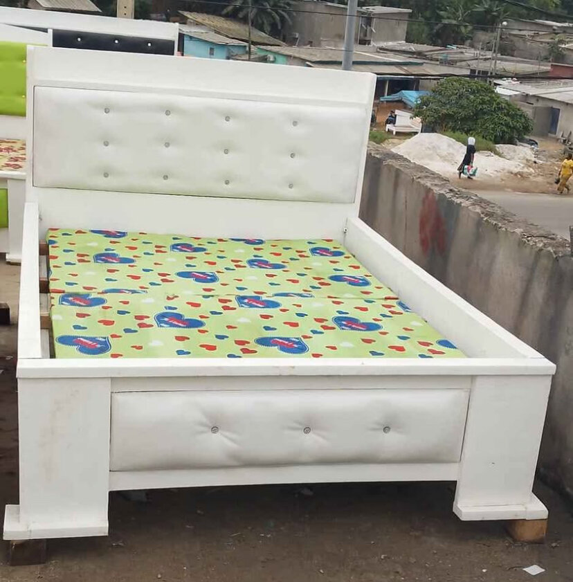 Découvrez ce lit en bois élégant avec une tête de lit rembourrée. Sa construction robuste et son design moderne en font un choix idéal pour toute chambre à coucher. Parfait pour ajouter du style et du confort à votre espace.