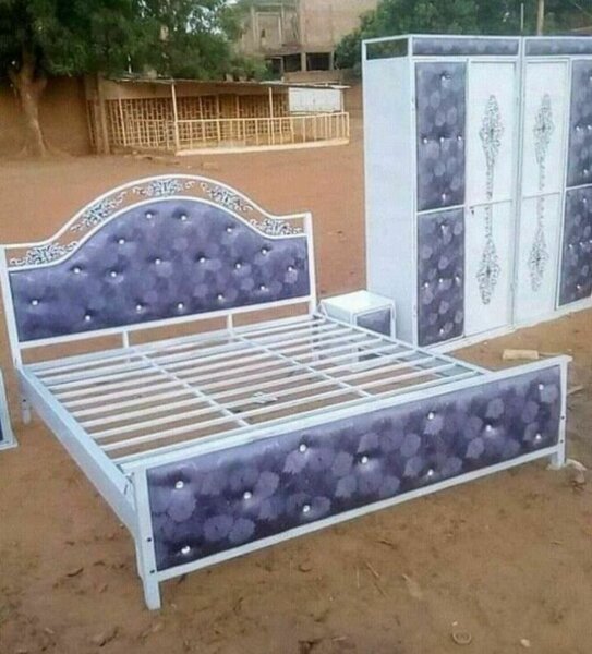 Lit en métal avec tête de lit capitonnée