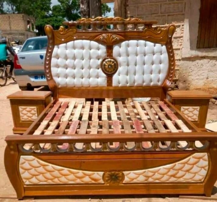 Découvrez ce lit luxueux, alliant bois et cuir, parfait pour une chambre élégante. Conçu pour le confort, il offre un design unique et des finitions soignées. Idéal pour les intérieurs modernes ou classiques.
