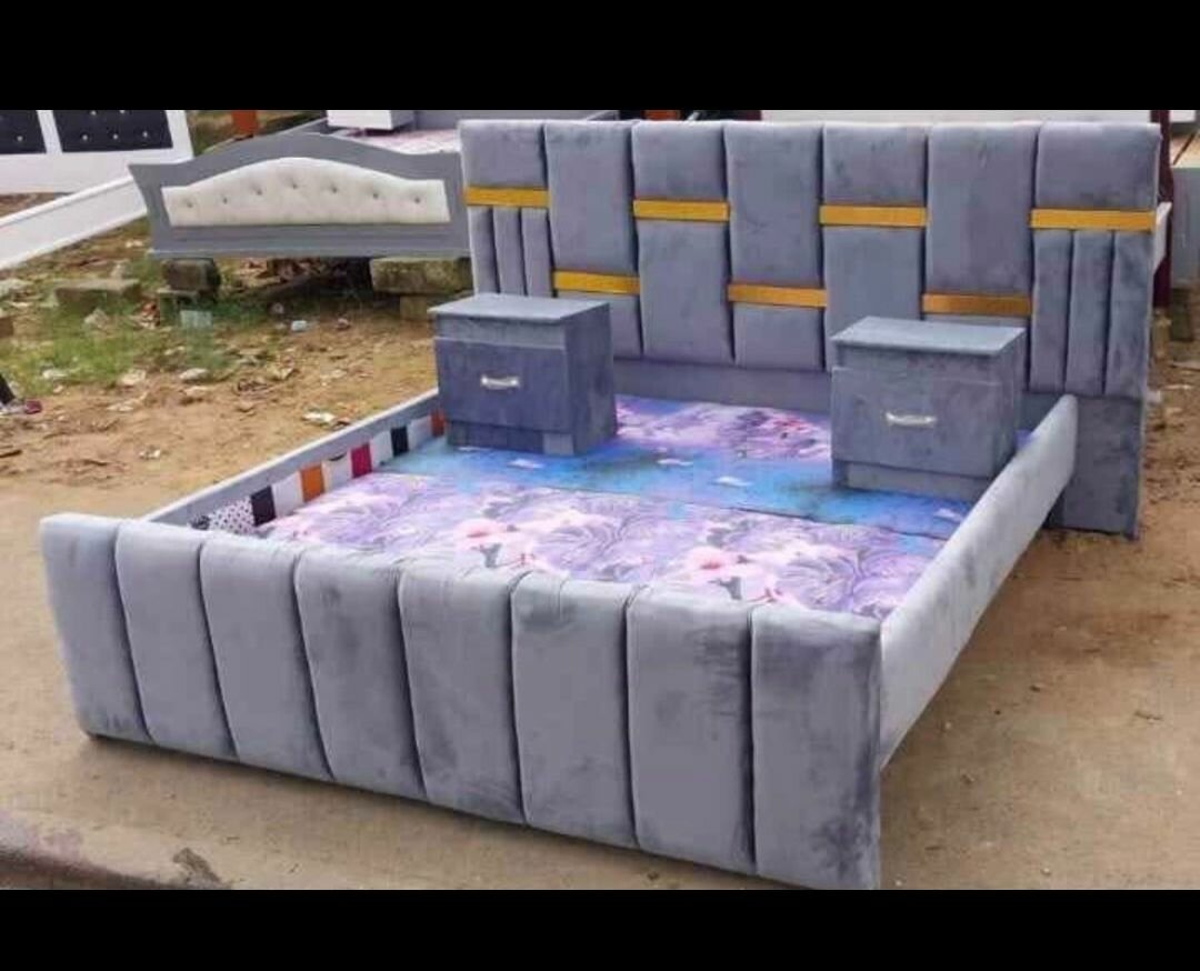 Lit gris avec rangements capitonné