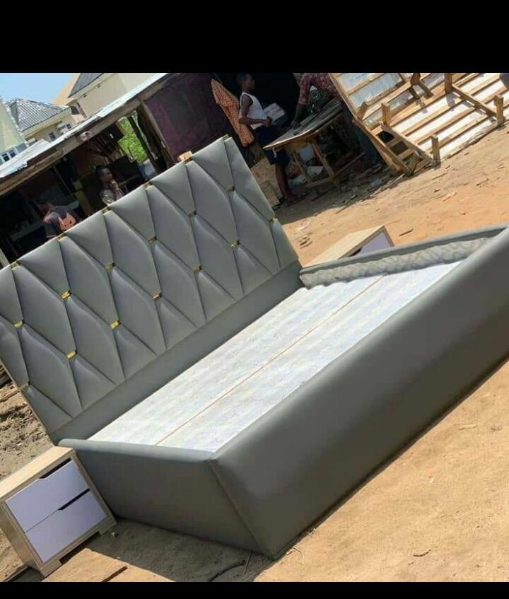 Lit gris moderne avec tête de lit capitonnée. Conception élégante et confortable pour une chambre à coucher contemporaine. Matériau de haute qualité pour une durabilité exceptionnelle.
