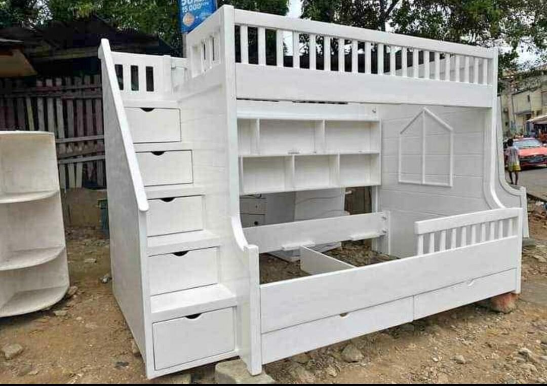 Optimisez l'espace avec ce lit mezzanine en bois blanc, équipé de nombreux tiroirs et étagères pour un rangement pratique. Convient aux enfants et aux adultes, idéal pour les petites chambres.