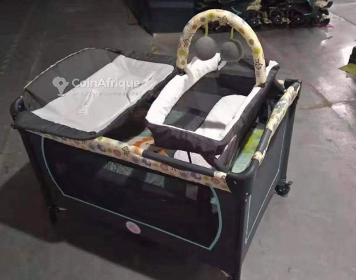 Lit parapluie pliable 60 x 120 cm pour le transport lit équipé de 2 pieds fixes et 2 roues avec frein pour permettre de déplacer le lit facilement.