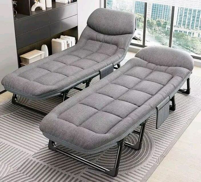 Lit de repos gris confortable et pliable, parfait pour le salon ou la chambre. Matériau doux et résistant. Facile à ranger.