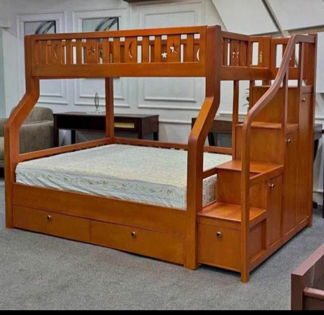Lit superposé en bois avec échelle et rangements intégrés. Conçu pour optimiser l'espace dans la chambre d'enfant. Fabriqué en bois de qualité, il est à la fois robuste et élégant. Comprend des tiroirs sous le lit inférieur pour un maximum de rangement.