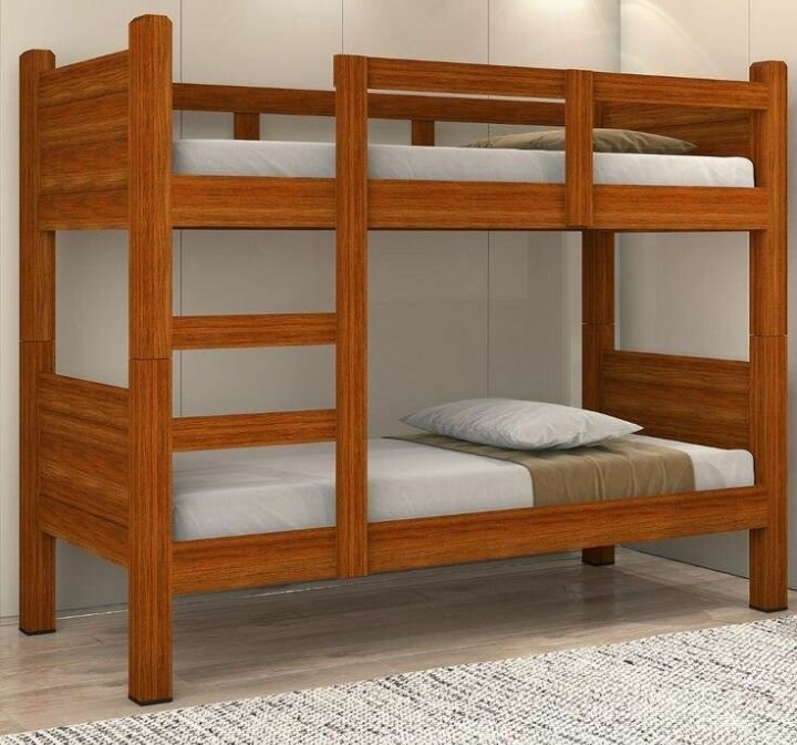 Lit superposé en bois pour enfants et adultes. Conception robuste et sécurisée avec échelles latérales. Idéal pour optimiser l'espace dans les chambres partagées.