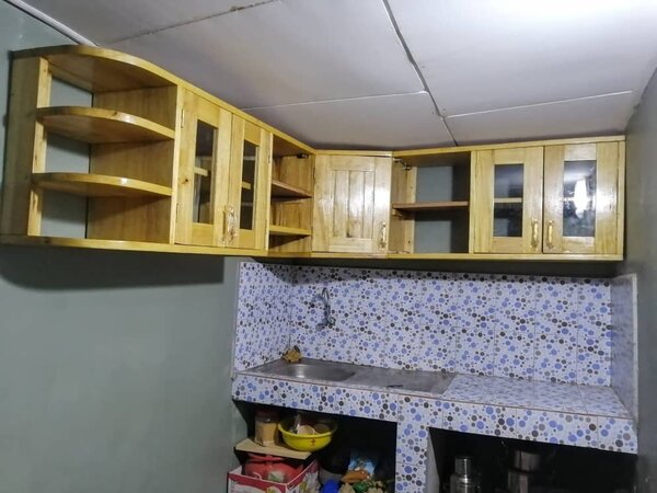 Lit superposé en bois orange avec échelles et rangements intégrés. Idéal pour les enfants et les adolescents, parfait pour optimiser l'espace dans une chambre partagée.