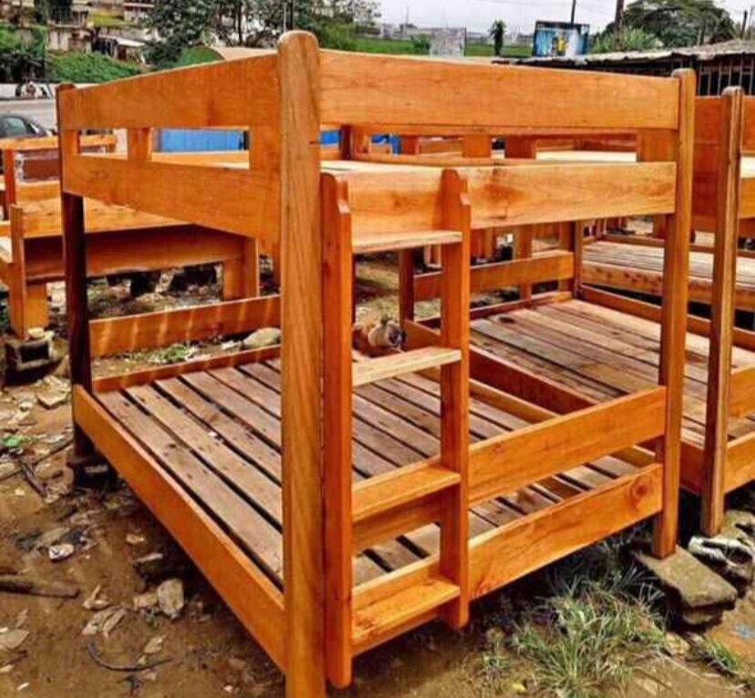Lit superposé en bois robuste, idéal pour les chambres d'enfants ou les dortoirs. Conception robuste et sécuritaire, parfait pour optimiser l'espace.