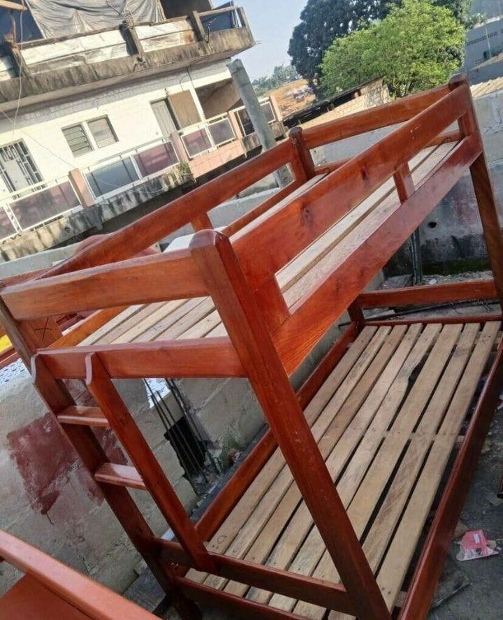 Lit superposé en bois, idéal pour optimiser l'espace dans une chambre. Conçu pour un usage confortable et sûr.