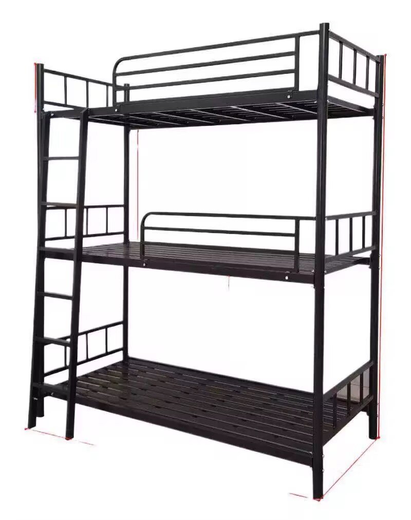 Lit superposé triple en métal robuste et durable. Conçu pour maximiser l'espace, idéal pour les familles nombreuses ou les colocations. Facile à assembler, structure solide et sécurisée, convient pour enfants et adultes.