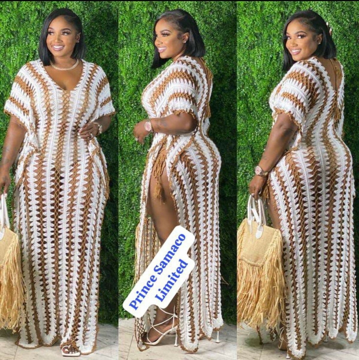 Longue robe de plage en laine fente à sur les deux côtés
