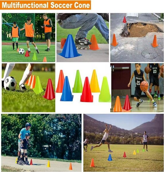 Idéaux pour délimiter des espaces lors d'activités sportives, ces cônes de marquage de couleur vive sont parfaits pour l'entraînement en intérieur et extérieur. Légers et durables, ils résistent aux intempéries et sont faciles à déplacer. Convient aux entraîneurs, enseignants et amateurs de sport. Excellent pour améliorer l'agilité et la coordination.