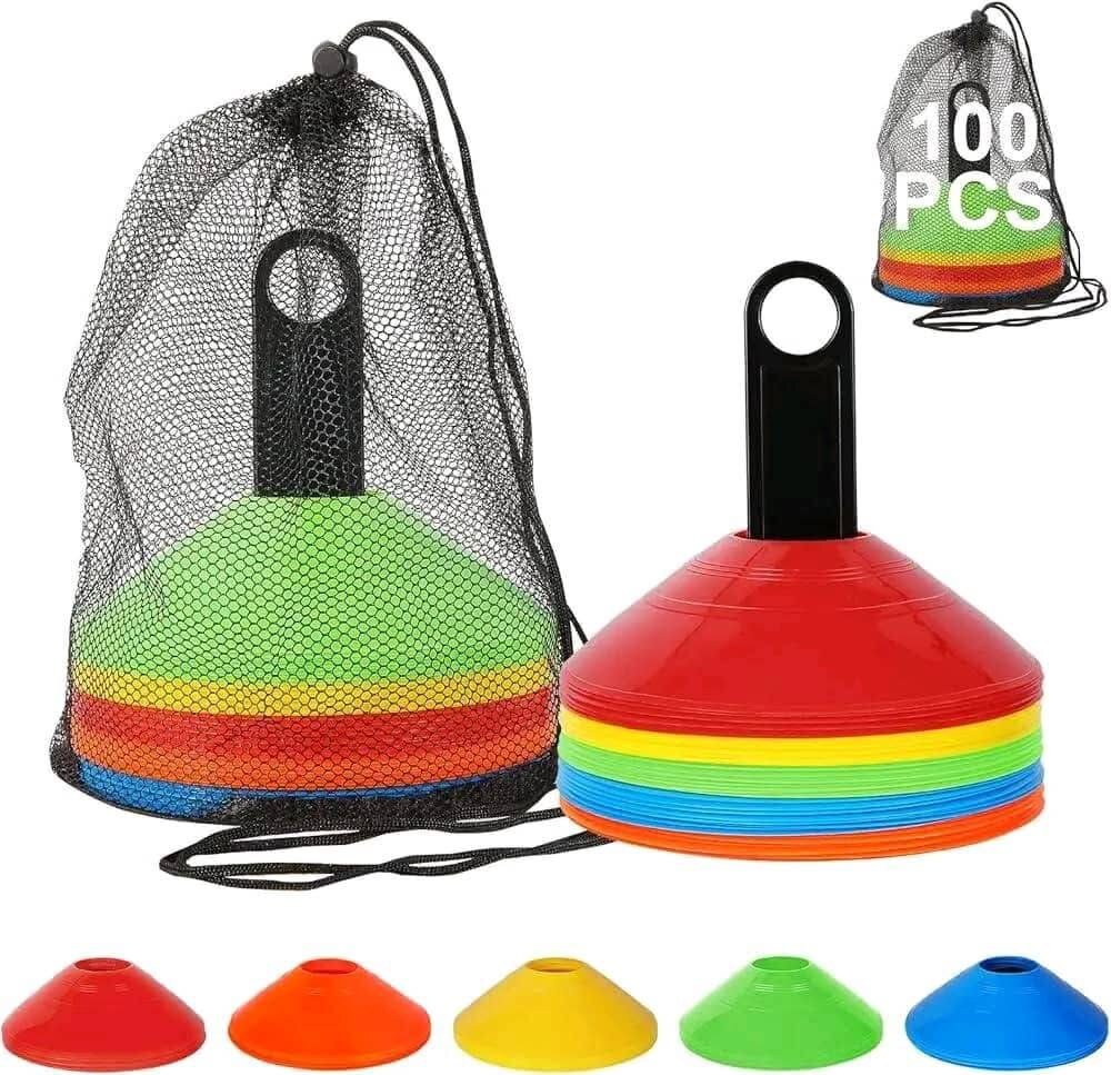Parfait pour le football, le tennis et les entraînements sportifs, ce lot de 100 cônes multicolores est indispensable pour toute séance de sport. Faciles à transporter avec leur sac de rangement, ces cônes robustes et légers sont idéaux pour délimiter les terrains et organiser des exercices variés. Un choix idéal pour les coachs et les passionnés de sport !