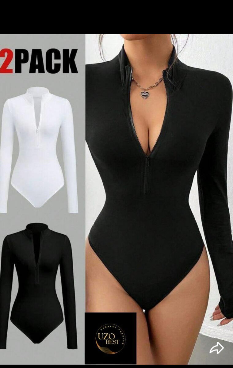 Découvrez notre lot de 2 bodys élégants à manches longues, parfaits pour toutes vos occasions. Avec leur design zippé et col montant, ces bodys assurent un look chic et confortable. Idéal pour porter seul ou en combinaison avec vos vêtements préférés. Fabriqués dans un tissu doux et extensible pour un ajustement parfait, ils sont un choix excellent pour compléter votre garde-robe.