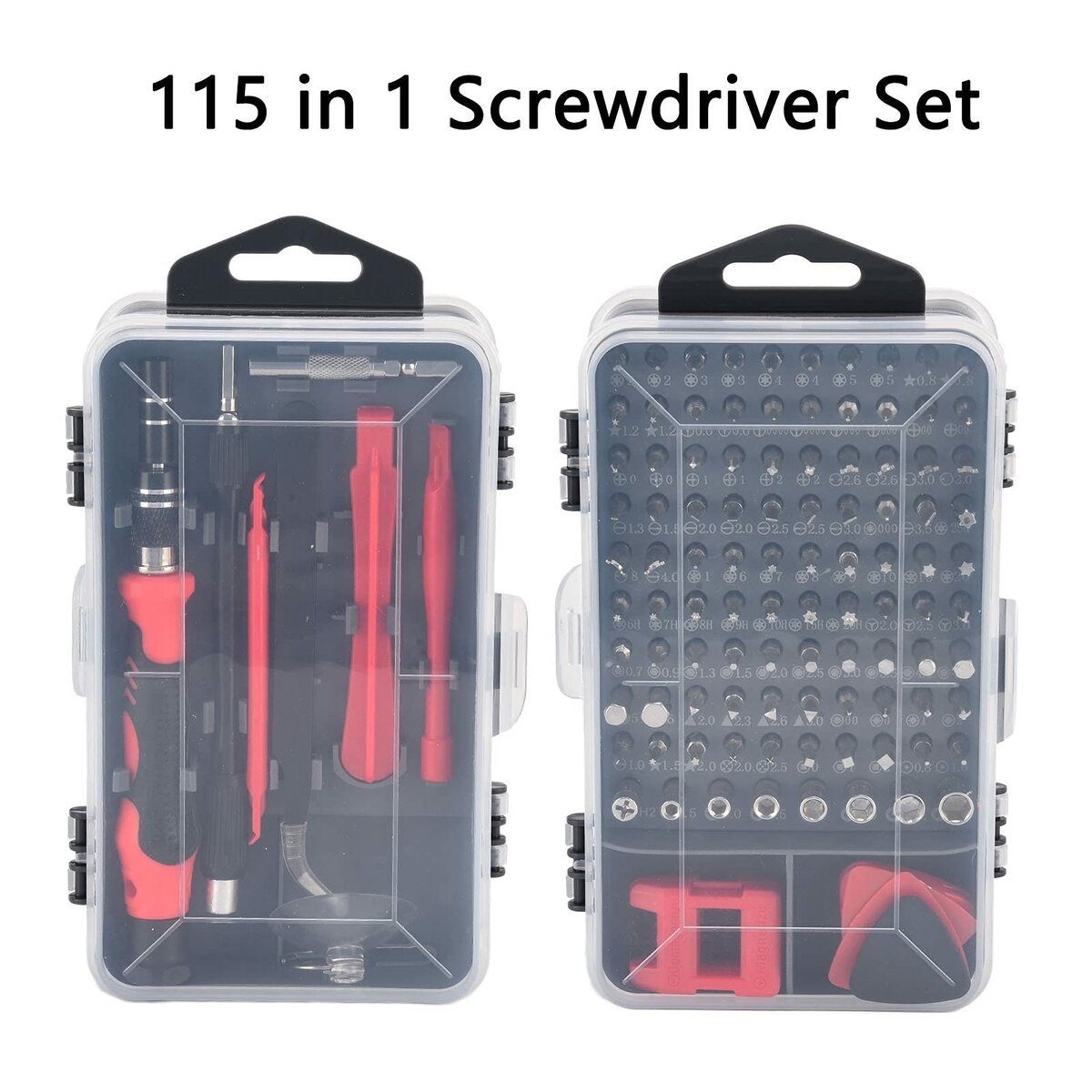 Kit de tournevis complet avec 115 pièces pour les amateurs de bricolage et les professionnels. Contient une variété d'embouts et d'outils pour les réparations électroniques, montres et appareils.