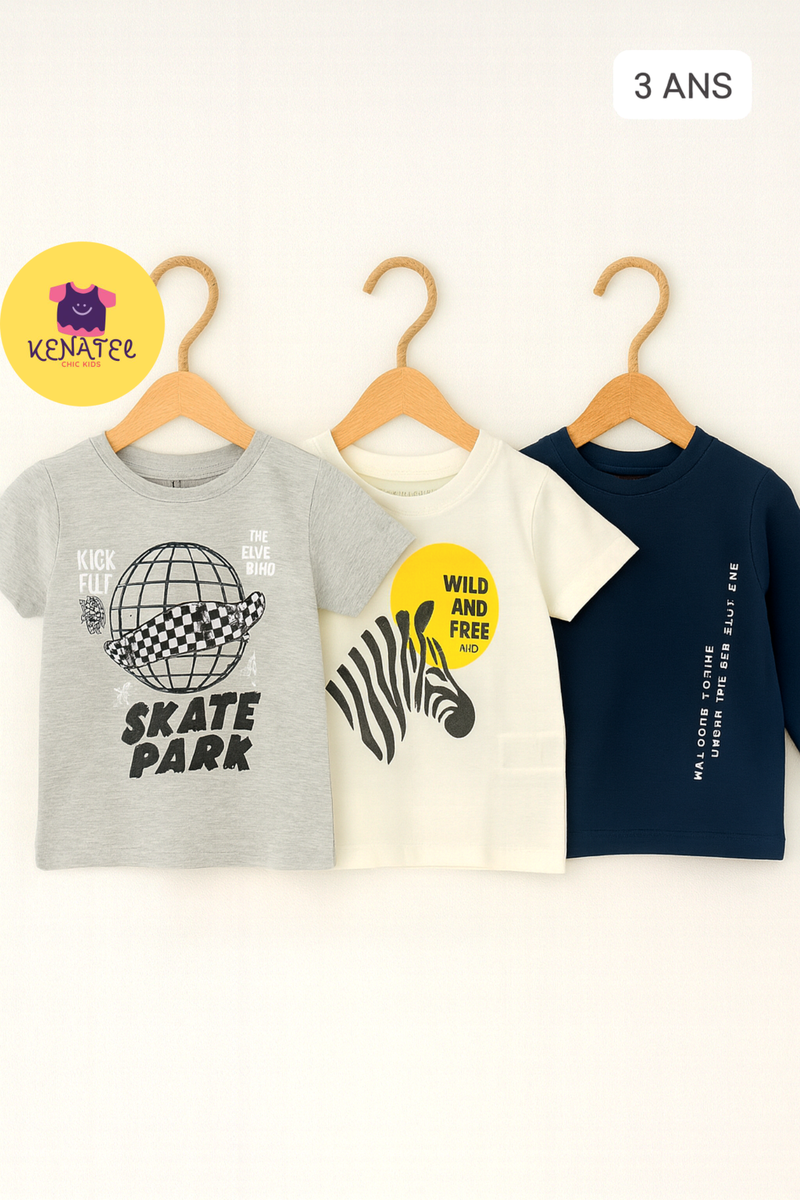Découvrez notre lot de 3 t-shirts pour enfants de 3 ans, parfaits pour un style décontracté et ludique. Fabriqués en coton doux, ces t-shirts offrent confort et durabilité. Chaque t-shirt arbore un design unique et amusant, idéal pour les aventures quotidiennes de votre enfant. Ils sont faciles à entretenir et à assortir avec d'autres vêtements. Parfait pour les jeux et les explorations, ce lot deviendra vite un incontournable de la garde-robe !