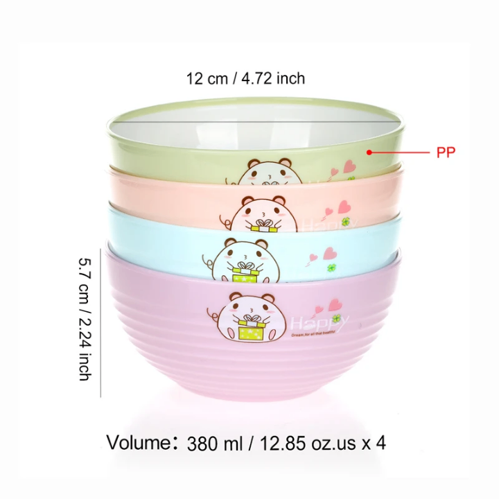 Un lot de 4 bols avec des dessins très amusants sont parfaits pour le petit déjeuner. Ils sont très résistants aux chocs.