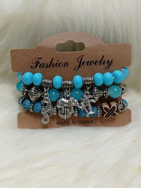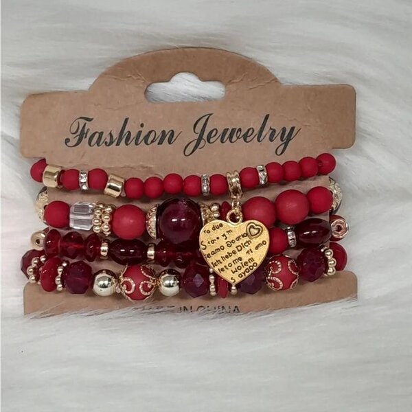 Ensemble de 4 bracelets en perles de verre et fantaisie métallique. Conçus pour les femmes, ces bracelets sont parfaits pour compléter une tenue décontractée ou élégante. Disponibles en différentes couleurs et motifs.