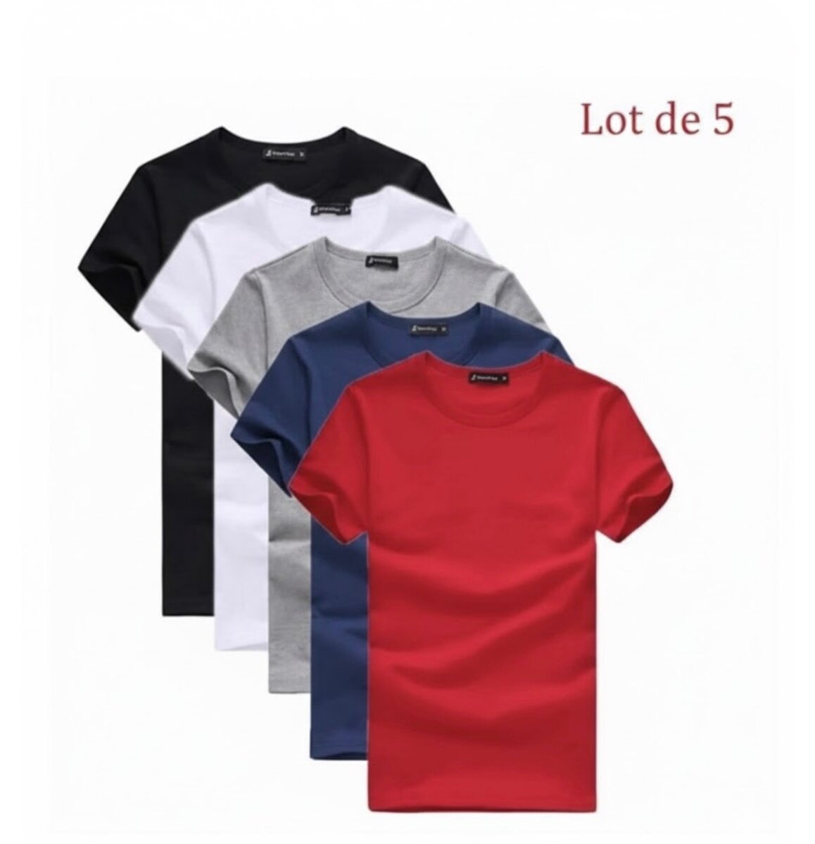 T-shirts basiques pour homme, confortables et respirants, disponibles en 5 couleurs différentes. Idéal pour un usage quotidien, ces T-shirts sont parfaits pour toute occasion. Lot de 5 pièces.