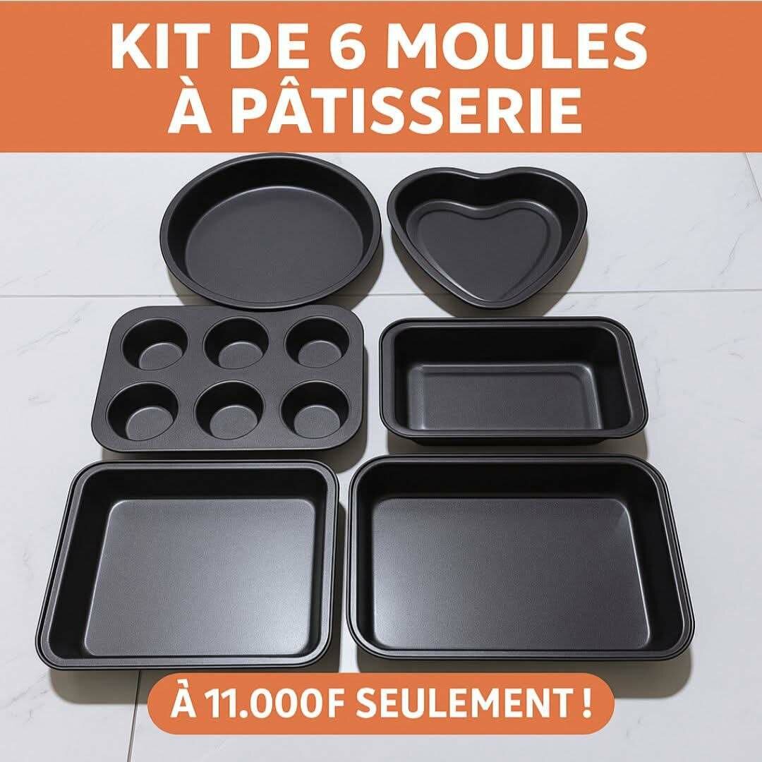 𝗞𝗜𝗧 𝗗𝗘 𝟲 𝗠𝗢𝗨𝗟𝗘𝗦 À 𝗣Â𝗧𝗜𝗦𝗦𝗘𝗥𝗜𝗘 𝗖𝗢𝗠𝗣𝗟𝗘𝗧 & 𝗣𝗥𝗔𝗧𝗜𝗤𝗨𝗘 Préparez vos meilleurs gâteaux, tartes, cakes et muffins avec ce kit de 6 moules variés, parfait pour toutes vos recettes maison !