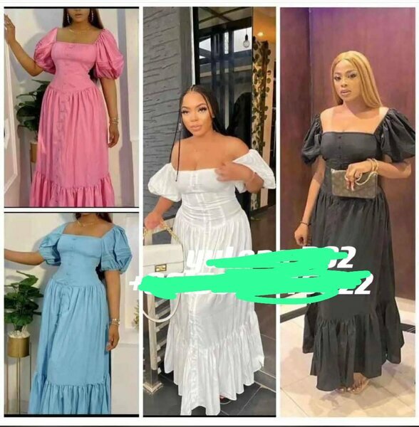 Lot de robes longues à manches bouffantes, dispo en rose, bleu, blanc, noir. Confortables et flatteuses, parfaites pour toutes occasions.