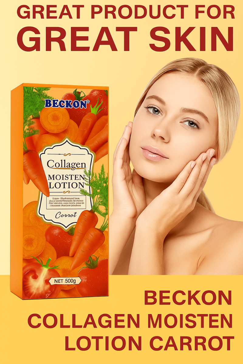 Revitalisez votre peau avec notre lotion hydratante enrichie en collagène et carotte. Idéale pour une peau douce et éclatante, elle nourrit intensément et protège contre la sécheresse. Parfait pour un usage quotidien pour tous types de peau.