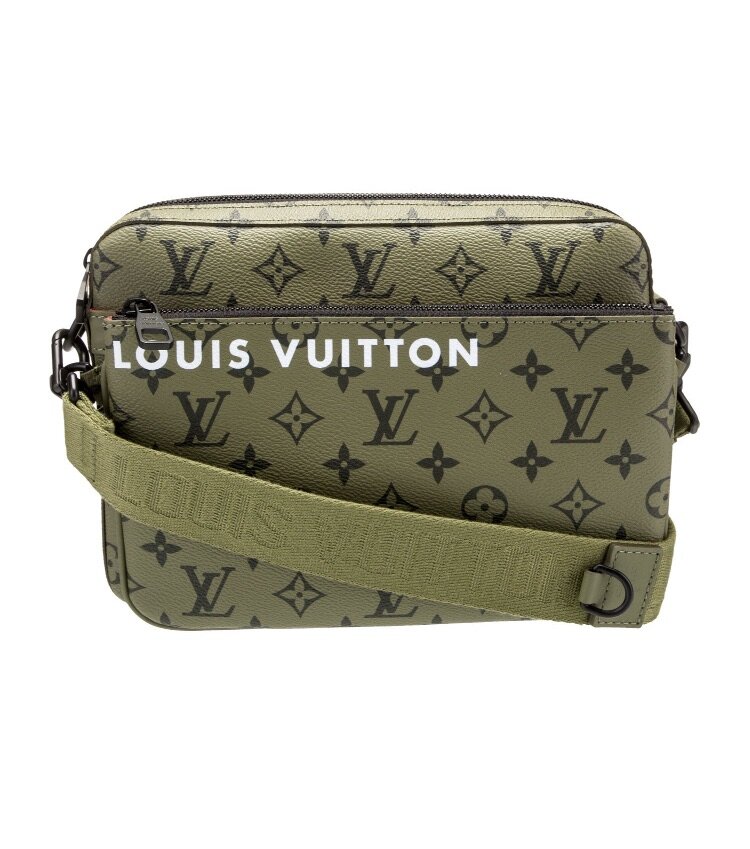 Louis Vuitton Crossbody Bag By Virgil Abloh Green Coated Canvas Printed Gold-Tone Hardware Single Adjustable Shoulder Strap Single Exterior Pocket Canvas Lining & Single Interior Pocket Zip Closure at Top Includes Dust Bag