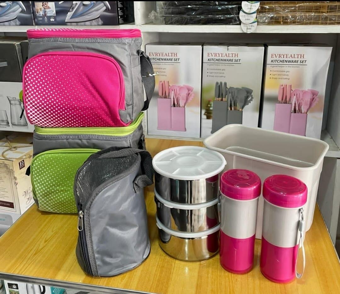 3Pcs Food Storage Containers - Silver/Green + 5Pcs Storage