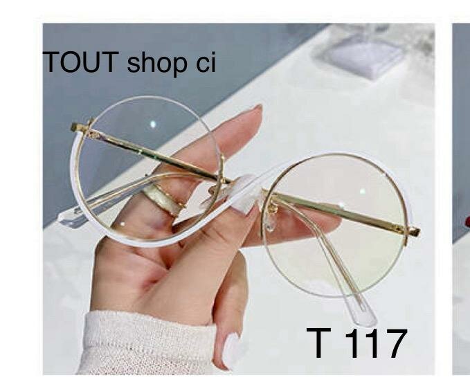 Découvrez les lunettes T 117, légères et élégantes avec des verres transparents et une monture en métal doré. Parfaites pour un look tendance et moderne. Les verres noircissent au soleil.