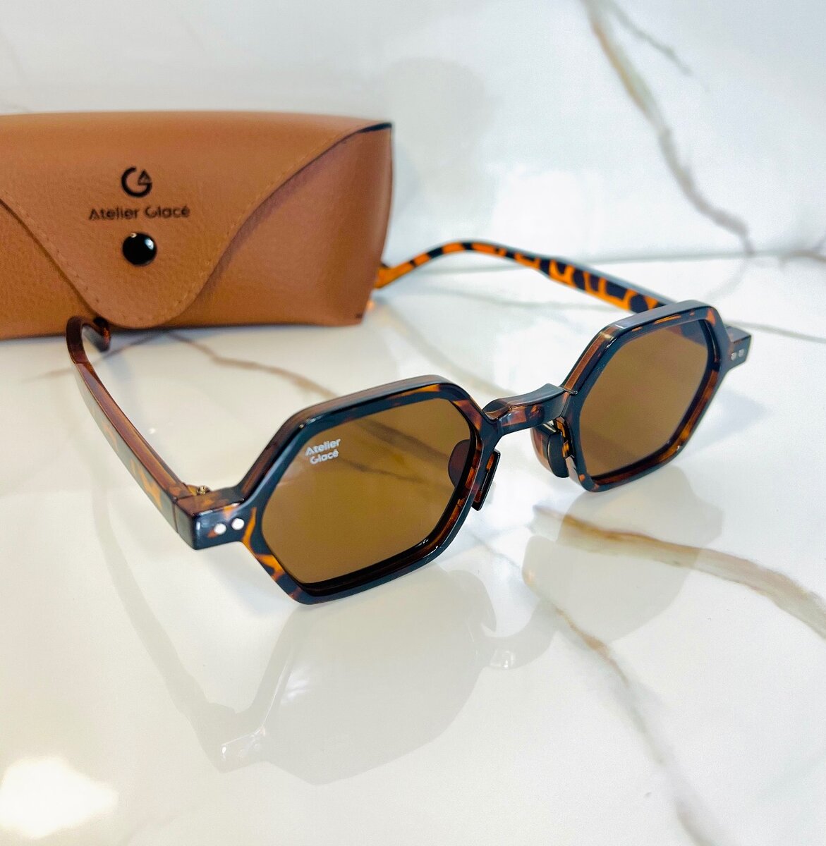 Découvrez l'élégance intemporelle des lunettes de soleil Atelier Glacé. Avec leur monture écaille raffinée et leurs verres protecteurs, elles sont parfaites pour ajouter une touche chic à votre look quotidien. Idéales pour les journées ensoleillées, elles offrent confort et style. Livrées avec un étui en cuir élégant, elles sont le choix parfait pour ceux qui apprécient la qualité et le design. Un accessoire indispensable pour vos sorties en plein air.