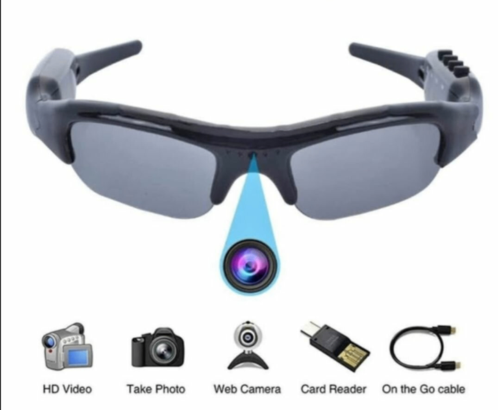 Lunettes de soleil avec caméra HD intégrée. Vidéo haute définition, appareil photo, webcam, lecteur de carte. Pratiques et polyvalentes.