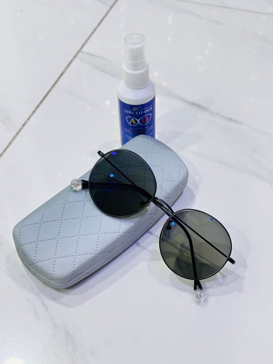 Lunettes de soleil avec étui et spray nettoyant